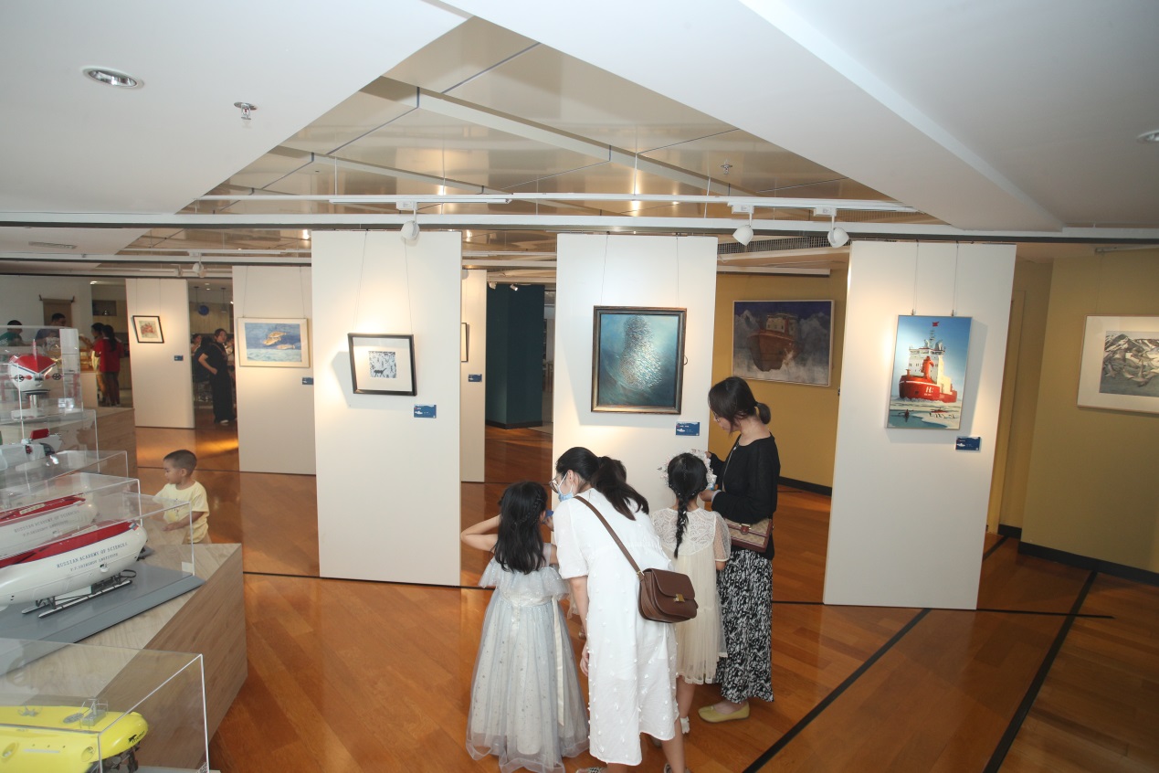 而在深海空間的科學與藝術圖書館,“極地·深藍”藝術與海洋畫展備受歡迎,有別于其他活動場地,在這里,公眾可以放慢腳步,靜靜欣賞畫作的精美和想象力。