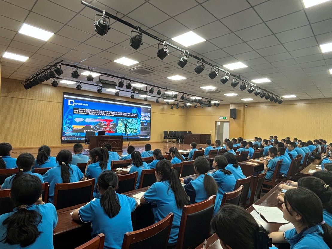 科普報告還連線了新疆生產建設兵團第二師八一中學的300余名學生,同學們認真聽取了報告,并與海南會場的同學們一道與老師進行互動問答。同學們紛紛表示,感受了到大海與星空的美妙與神奇,體驗到科技帶來的樂趣。