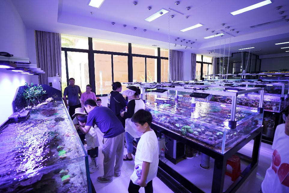 “從大海到星辰”活動的海南分會場在中國科學院深??茖W與工程研究所舉辦,總計1800余人到深海所參加了活動?;顒悠陂g,向市民開放了工程實驗室、珊瑚礁生態模擬實驗室、海洋生物繁育岸基實驗基地、鯨豚標本館等場館,人們走進工程實驗室,圍繞海試裝置和設備,詢問實驗設備的原理;參觀了珊瑚、硨磲、玳瑁等活體生物,以及大大小小、不同種類的海洋生物標本,并與科研人員展開討論。