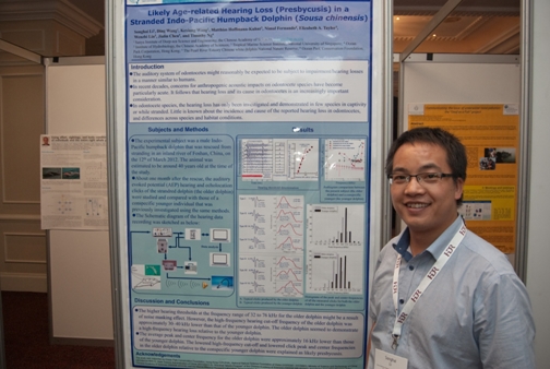 此次會議,李松海與來自世界各地的同行專家分享了其有關中華白海豚聽覺研究的最新研究成果──中華白海豚可能存在老年性耳聾現(xiàn)象。這是繼去年李松海及其同事在世界上首次報道了中華白海豚的聽覺能力及其聽力敏感的聲信號頻率范圍以來的又一次重大發(fā)現(xiàn)。這些研究結果填補了世界上有關中華白海豚聽覺研究領域的空白,為制定有效的保護對策以緩解水下噪聲對中華白海豚的影響提供了科學依據(jù)。