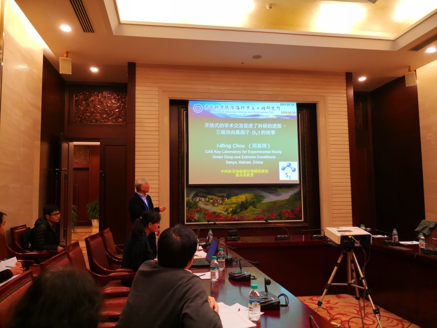 2017年12月9日-13日,深海極端環境模擬研究實驗室周義明研究員應邀參加了第八屆全國成礦理論與找礦方法學術討論會,并做了題為“開放式的學術交流促進了科研的進展——三硫自由基離子(S3-)的故事”的特邀報告。