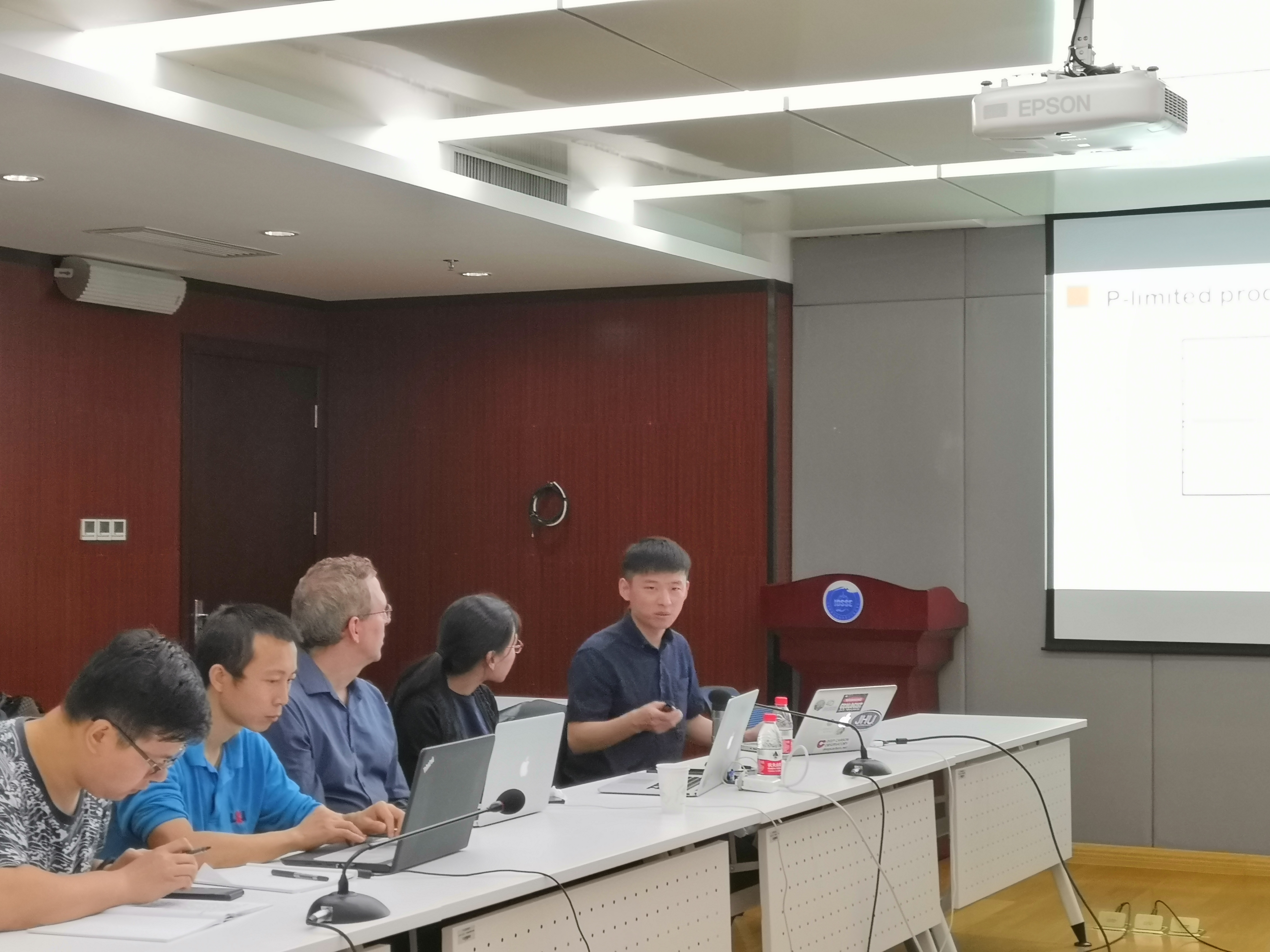 報告詳盡地描述了早期地球的磷循環及其對生命進化的影響,其研究結果表明:鐵(II)-磷酸鹽(vivianite)的沉淀可能導致極低水平的海水磷;太古代海洋中海水的低P/Fe比例有利于不產氧的光自養生物的生長,抑制藍藻成為生態和生物地球化學循環的優勢群體;晚太古代硫化物氧化風化的增加提供了一種提高P/Fe比例的機制,有利于藍藻的生長,觸發了大氣的不可逆氧化。此外,郝記華博士還向大家介紹了關于土衛二海水中有磷元素存在的初步結果。會后,郝記華博士與到會師生進行了交流探討。