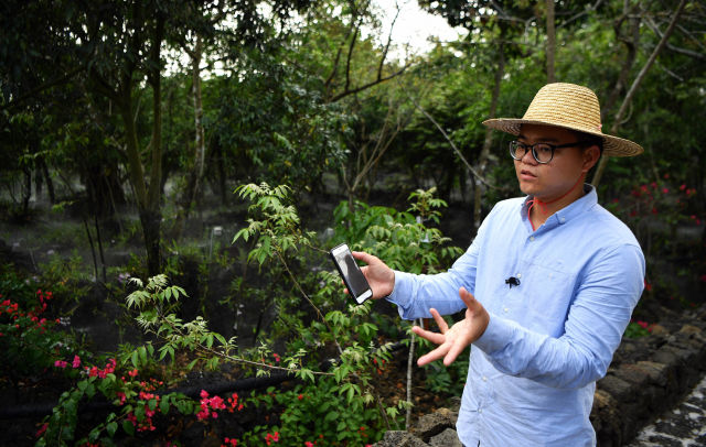 隨后,習近平沿著石板路步行來到施茶村火山石斛園。施茶村村民、技術員吳清偉說:“我們向總書記介紹了現代化的智能噴灌技術,只需要在手機上點擊開關,就可以給石斛進行澆灌,總書記聽完高興地稱贊說這個很方便。”