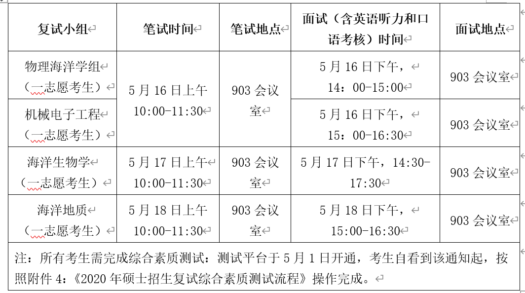 (二)筆試內容:對應各報考專業,分別進行相關專業筆試,筆試時間為90分鐘,內容分別是《海洋生物學》《物理海洋》《海洋地質與地球化學》《機械電子工程綜合》(含電子信息內容)。無參考書目。