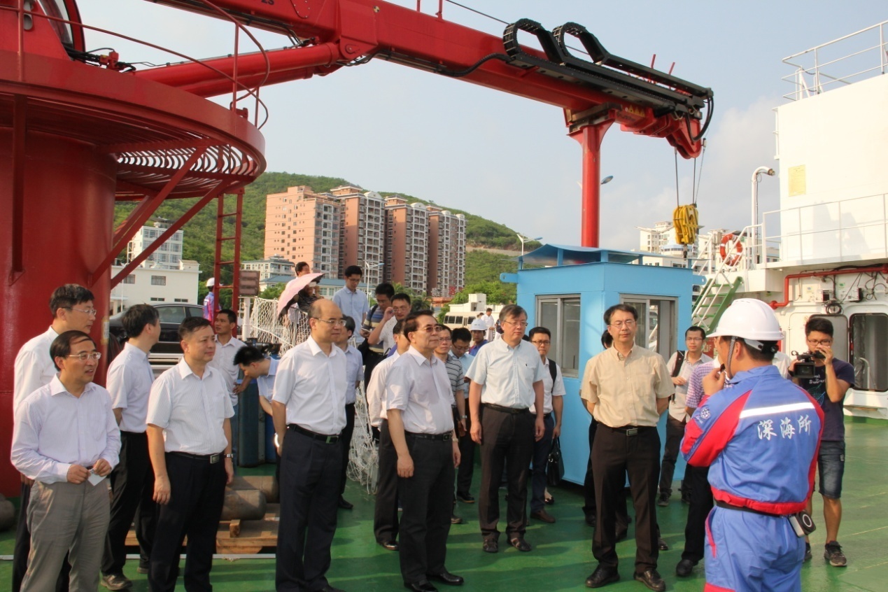 聽取匯報后,白春禮發表講話,他說,“探索一號”在短短13個月,多家涉海單位協同創新,工作人員主動犧牲休息時間,共同攻克了多項技術難點,創造了多個國內之最,充分體現了奉獻和協作兩個精神,也體現了科學家的戰略前瞻眼光。他特別指出,“探索一號”突破常規、大膽創新型的完成改修,為國家深海研究計劃的實施奠定了基礎。希望深海所集聚院內外優勢力量,按照國家深海戰略需求,充分發揮“探索一號”深??瓶己凸こ套鳂I的支持能力。