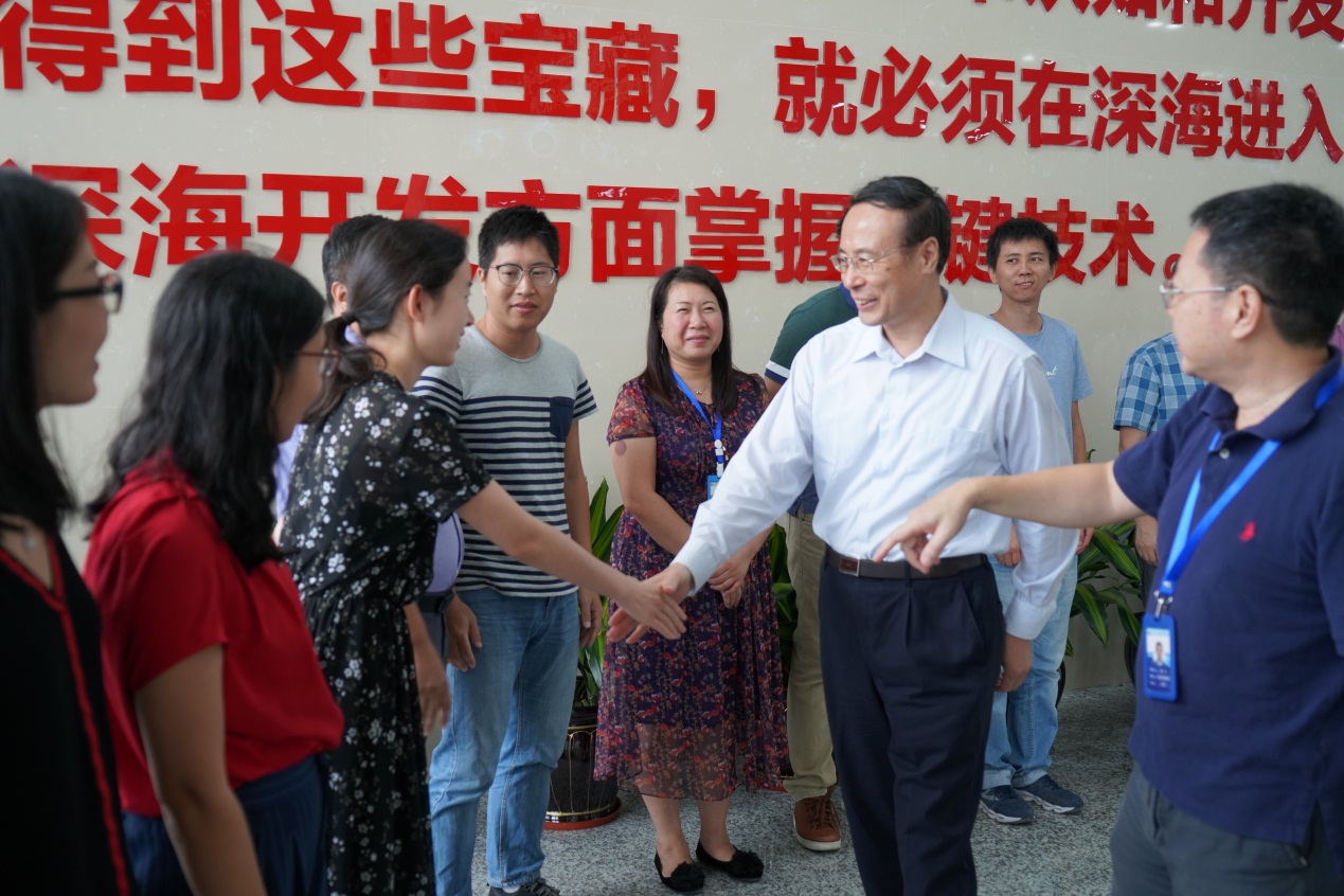 萬立駿一行實地查看了各型深海科考裝備,了解研究所概況和未來發(fā)展方向,并觀看海試宣傳片。隨后,在綜合樓大廳接見了該所歸國留學(xué)人員代表。