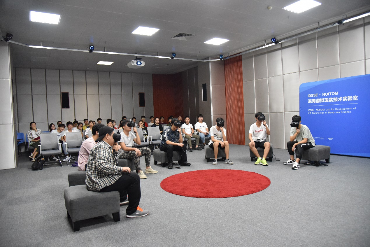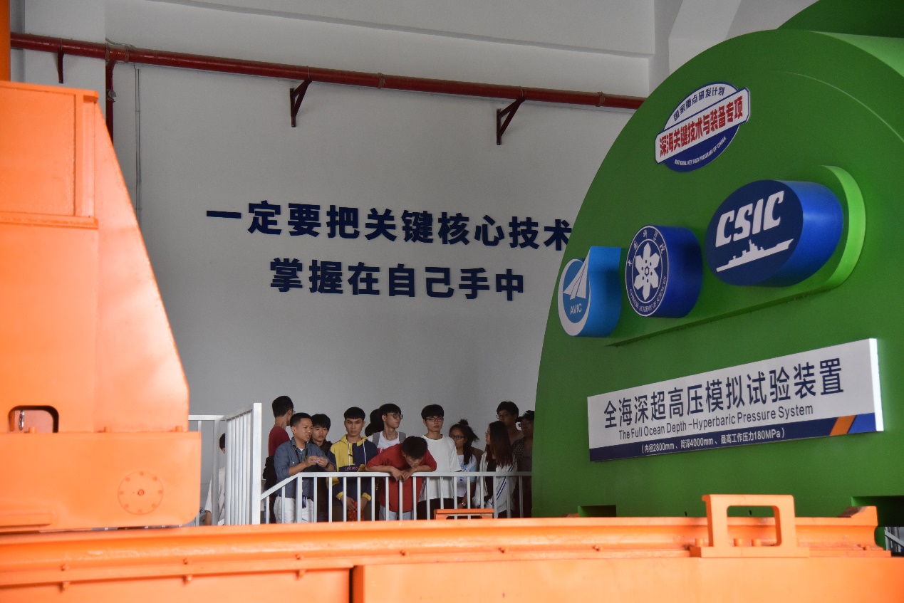 首先,活動(dòng)邀請(qǐng)到來自深海工程技術(shù)部的陳俊副研究員以《海洋裝備及其科考應(yīng)用》為題,向同學(xué)們介紹了海洋裝備的類別和國內(nèi)外研究現(xiàn)狀,并介紹了深淵著陸器的基本原理、研究進(jìn)展和應(yīng)用情況;隨后,在工作人員的帶領(lǐng)下,同學(xué)們參觀了工程實(shí)驗(yàn)室和深海超高壓模擬試驗(yàn)裝置,零距離接觸深淵著陸器、深海機(jī)器人等深海裝備,了解超高壓模擬試驗(yàn)裝置的工作原理;通過觀看“深海勇士”號(hào)載人潛水器研制與海試紀(jì)錄片,了解深海裝備的研發(fā)與應(yīng)用過程;最后,來訪人員通過VR虛擬現(xiàn)實(shí)體驗(yàn),“親身感受”深海作業(yè)場景和海底奇觀。活動(dòng)使同學(xué)們大開眼界,激發(fā)了大家對(duì)深海工程技術(shù)和深淵探索的極大興趣。