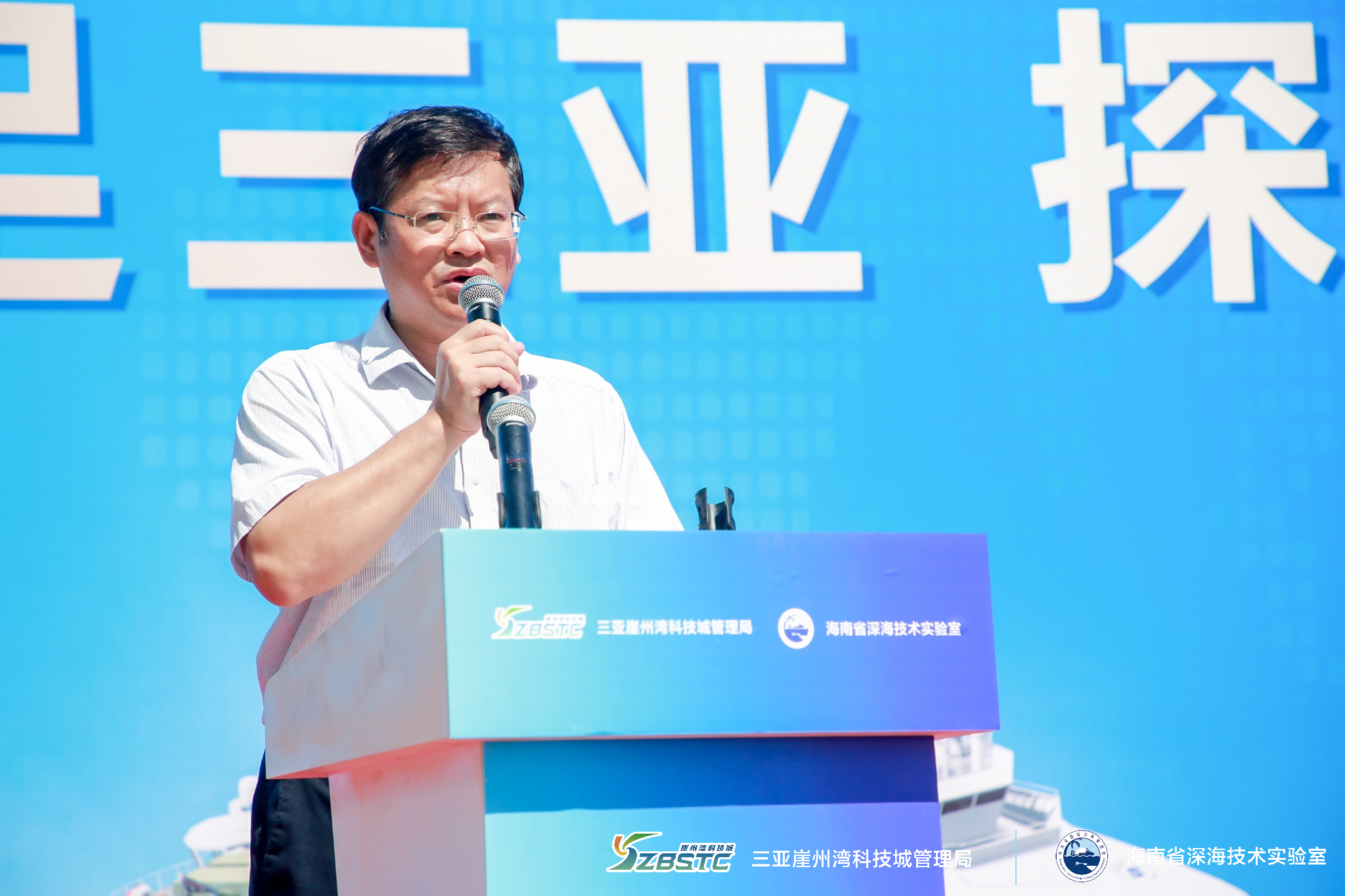 隨后,在南山港碼頭,三亞崖州灣科技城為 “探索二號”舉行隆重的入列儀式,船舶增改項目負責人唐古拉山向海南省人民政府副秘書長賴泳文匯報:“探索二號”船完成改建研制工作,回到三亞,正式入列。賴泳文首先表示同意入列,并代表省政府,向奮戰(zhàn)在“探索二號”科考船改建一線的科技人員們表示衷心的感謝,賴泳文指出:“探索二號”的正式入列,將推動海南逐步形成“雙船雙潛器”為主、系列無人深潛裝置為輔的深海科考重大裝備集群,在全世界海洋科技領域占據(jù)極為重要的位置。他希望我們在全力保障國家戰(zhàn)略需要的同時,落實科技資源共享要求,繼續(xù)加大支持深海戰(zhàn)略產(chǎn)業(yè)發(fā)展,他指出:海南將一如既往地支持深海科技創(chuàng)新活動,保障全海深載人潛水器海試和科考任務,助力深海所在深海領域登攀高峰。海南省科學技術廳黨委書記國章成出席儀式并致辭,他也對“探索二號”的正式入列表示歡迎。