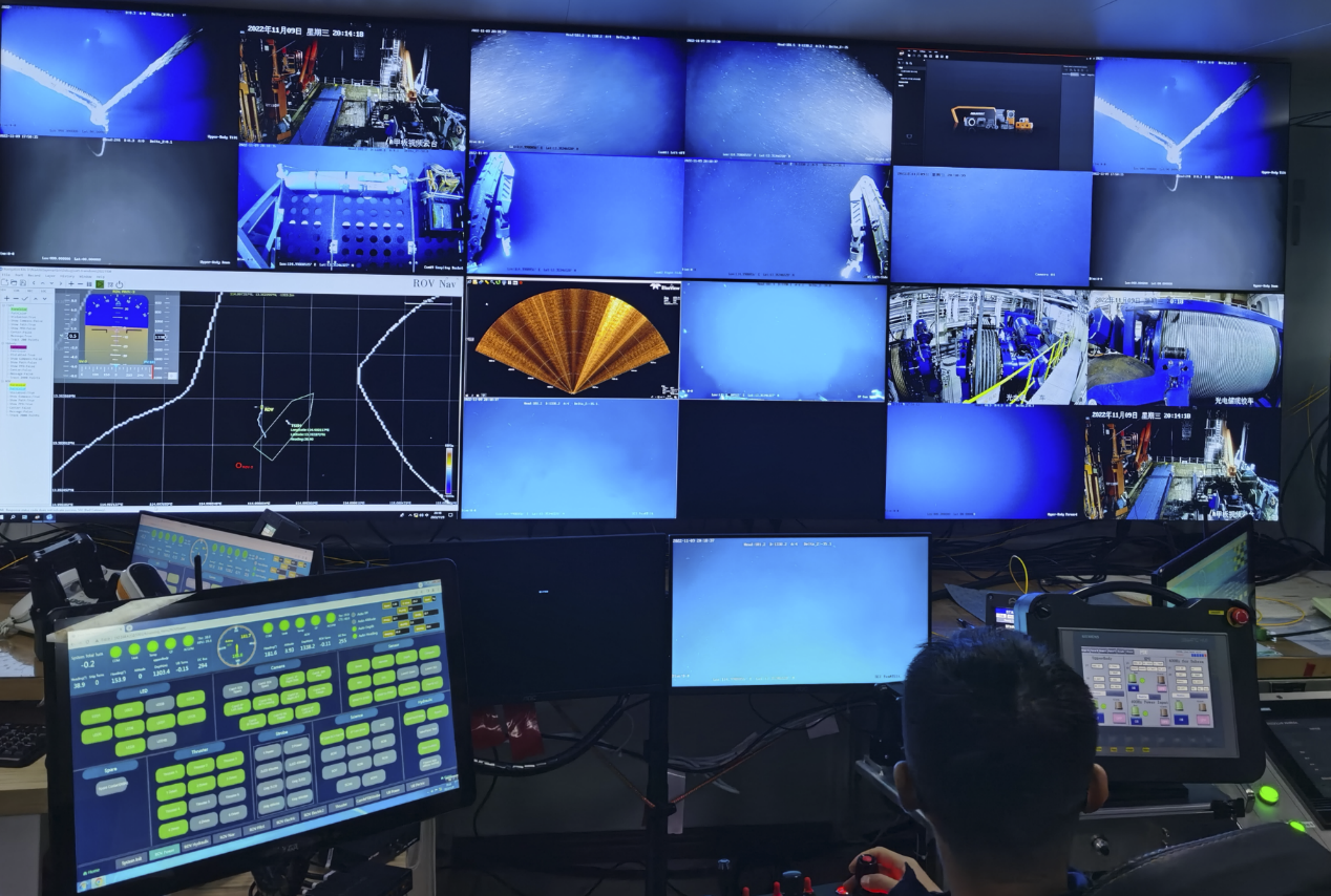 11月7日至19日,“探索二號”科考船攜深海浮游式移動作業平臺(ROV)和中繼器赴南海開展TS2-19航次,該平臺完成了由淺到深3個級別(1500米,2500米和4500米)的海上試驗,最大工作深度達到4308米。該平臺在海試過程中工作正常,各項指標達到設計目標,順利完成海試驗證,結果表明該系統具備初步的作業能力,可以承擔深海科考、工程作業等任務。