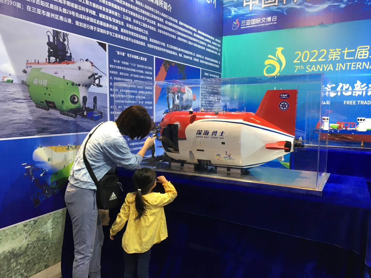 本屆文博會主會場設(shè)在三亞市紅樹林國際會展中心,設(shè)有“海上絲路”文化展、全球文旅精品展、中華文化帶展、自貿(mào)港文化展、科技文化展等五大專題展區(qū)及“云上文博”線上直播展廳。深海所受邀作為“海上絲路”文化展單位展出“深海勇士”號、“奮斗者”號載人潛水器模型以及“探索一號”科考船模型,并通過播放科考紀錄片的形式,幫助觀眾了解載人潛水器深海科考的作業(yè)場景和“奮斗者”號的海試過程,該成果受到市民的關(guān)注。